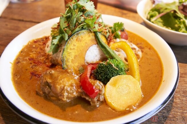 そして次に出てきたおすしさんのスペシャルカレー!チキン、パプリカ、人参にレンコン、ブロッコリー、トマト、かぼちゃになんとオクラ!レスラーにしたらご飯の量が少ないかもでしたが、カレーの香りとお野菜の彩りで我慢できず、珍しいトッピングのオクラを少しいただきました。オクラの粘り気と、サラサラのルーが絶妙に合う程よいピリ辛味。次来た時はこれを注文する!絶対!