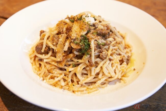 そしてクリスさんの和牛ボロネーゼ。肉がね、デカイのだ! しめじと肉が、よくソースといい感じに絡み合っていて口の中で第九が始まった。なんといってもこの生麺のモチモチ感! ハンパねぇー! 次来たらカレー言うてもたけど、却下。またノロネーゼ食べたい! それくらい美味しかった! 幸せ気分で早々完食。