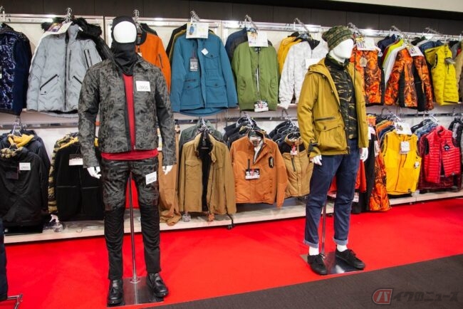 そして、空気で保温性を確保するベストなど面白いアイテムもたくさんありました。バイク用のカラーはベーシックなものが多いのですが、その他のダウンジャケットや、防風インナーなど、カラーバリエーションが豊富でグラフィカルなアイテムが多数!着こなしのアクセントやミドルレイヤーとして取り入れたら、いつもと違うバイクスタイルに仕上がりそうで、ちょっとコーディネートが楽しくなっちゃいそうです。バイクウエアは機能性が必須で、着こなすことの楽しみは二の次になってしまいがちなのですが、ワークマンのアイテムなら、着こなしの楽しさも味わえそうですね。