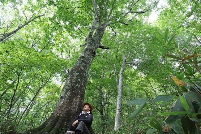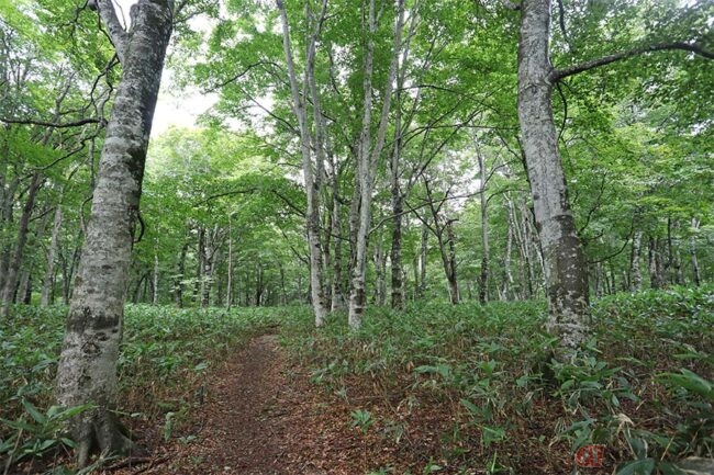 もうちょっと時間がある、という人には、湿原の周囲にあるブナ林を歩いてみるのがおすすめです。多少高低差はありますが、湿原散策プラス1時間ほどで見事なブナの原生林の中を周回できるトレッキングルートが整備されているのです。身も心も浄化されるようでホントに気持ちがよく、疲れも吹き飛びます。