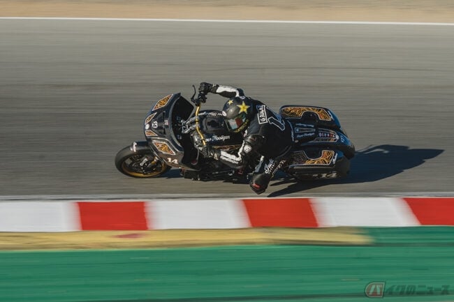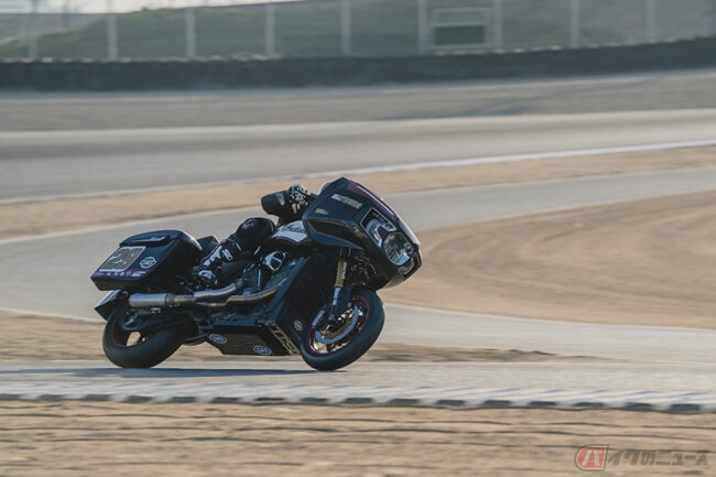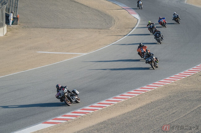 初の開催となった同レースでは、11台のハーレー・ダビッドソン(以下:ハーレー)と2台のインディアンのレース用バイクが、5m近くの高低差を下るS字シケイン「コークスクリュー」で知られる米国のサーキットに集結。全8周で行われました。