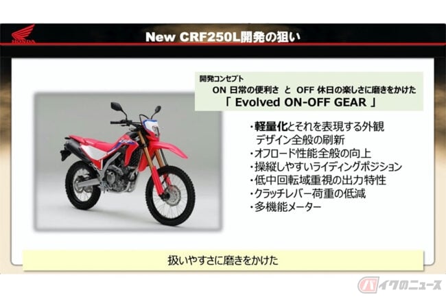 新型CRF250Lの開発コンセプトは?