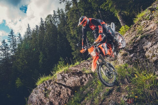 KTMはこのカテゴリのモデルにおいて代表的なメーカーとしても知られており、2021年型となる「609 ENDURO R」では専用設定のWP製XPLORサスペンションの装備や、オフロード/コーナリングABS、トラクションコントロールなどの電子制御システムを搭載するなど、これまでの長所を踏襲しつつ、ライディングモード機能とABSをはじめ、より実用性を高めたアップデートがなされています。