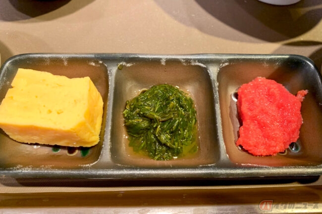 おかずもまた最高の部類で、優しい味の出汁巻卵、明太子、どれも白米に合います。このフードコートでは漬物類も目を見張るものがあり、こういった一品も手を抜いていないのが嬉しいところ。そして薄味の煮物が朝の胃袋に優しいこと! もちろん朝からもっとボリューミーなメニューもありますが、朝限定(6:00から11:00)の定食もオススメなのです。