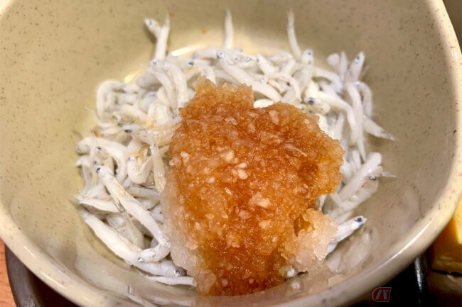 さて、この和定食でまずお伝えしたいのは、お米が美味しいことです。これはほかのメニューにも言えますが、美味しいご飯と味噌汁だけでベースの満足度はクリアというもの。そしてしらすと大根おろしに少量お醤油を垂らして……。これはもうご飯が進みます!