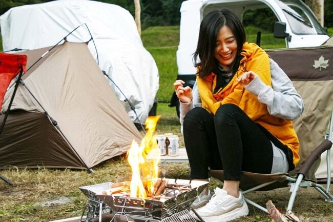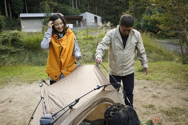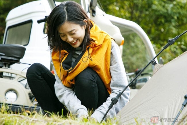 琴美さん「テントの設営はほとんどお任せだったのですが、少しだけ手伝いました。初めてクイ?(ペグです)を打ったり。夜はみんなでのんびり飲みながら外で話したのも気持ちよかった。運転も意外と褒めてくれて、嬉しかったです!」