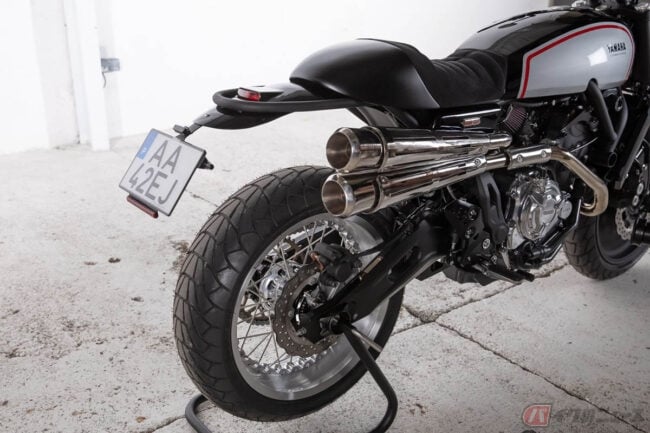 1960年代に製造されたヤマハのスクランブラー「YR2/YR3」のイメージからインスピレーションを受けた700GTでは、外装パーツの大部分を剥ぎ取り、自作のパーツを使用。フロントサスペンションをローダウンし、YR2を模倣したショックカバーを装着。そこにアップスタイルのエキゾーストシステムを装着することでレトロなスクランブラースタイルのイメージを再現しています。