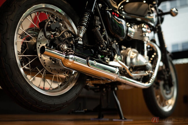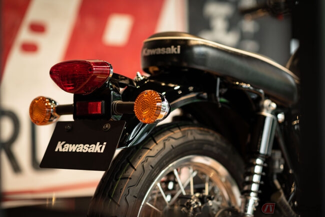 「MEGURO K3を展示した初日は多少の行列が出来ていたようですが、全国のカワサキプラザからも展示の以来を頂いています。また、車両の予約状況に関してはまだ具体的な数字はでていませんが、カワサキプラザ各店に多くのお問い合わせを頂いているようです。