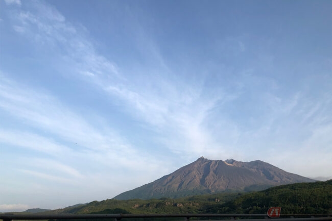 鹿屋市から霧島にかけては湾内の道を走ります。美しい鹿児島湾を左手に眺めながら、広い空のフラットコースが続きます。ときどきアップダウンもありますが、信号も少なく情緒のある道が延々と続いて気持ちが良い。