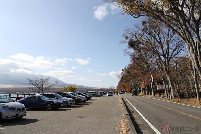 山中湖は富士五湖の中でも最も面積が広い湖です。周囲が開けているため、富士山の姿がよく見えるポイントが多い湖としても知られています。今回ご紹介する「長池親水公園」の駐車場もそんな場所のひとつです。