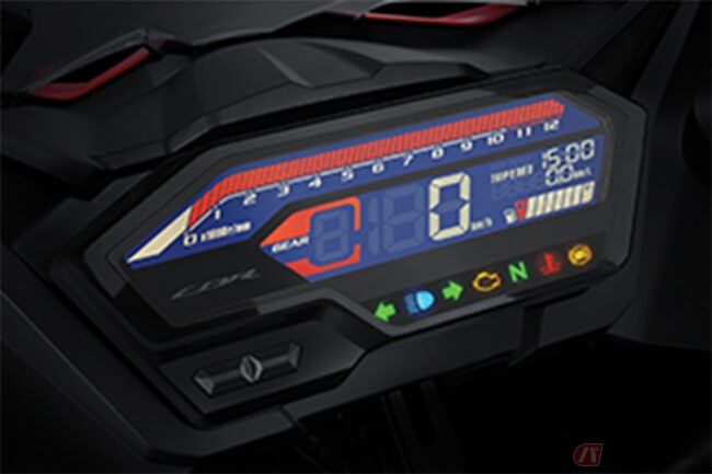 スポーツモデルでありながら、シート高782mmと足つき製にも優れたCBR150Rの新型モデルでは、上位機種である「CBR250RR」譲りのスポーティなフロントフェイスを採用。鋭さを感じさせるデザインへと変更されています。