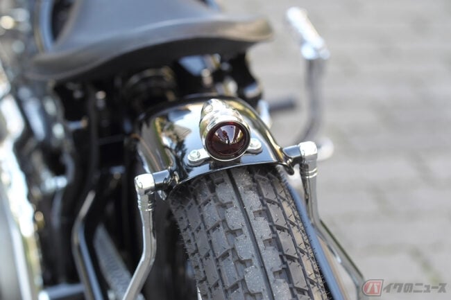 この車両を前に、ビルダーの溝尻氏は「ステー類の削り出しや仕上げは手作業で行って機械加工感を消したり、車体全体のバランスを考え、フレームのシートレール部分をドロップダウンして全体のシルエットをまとめることに留意した」と製作過程を振り返りますが、そうした一つ、一つの仕事が車体のクオリティアップに繋がっていることは、まず間違いありません。また、こうした部分がプロビルダー同士による投票で高い評価を受けたポイントであることは言うまでもないでしょう。