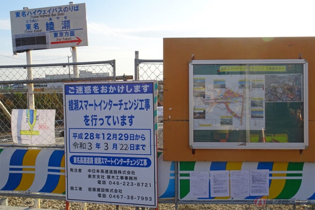 高速道路のインターチェンジ(IC)には、ETC専用の出入口であるスマートインターチェンジがあります。低コストで設置が可能、地域の活性化にもつながるという理由から、近年積極的に設置されています。供用開始を2021年夏ごろに控えた東名高速道路「綾瀬スマートIC」付近には、開通前にしか見られない光景がありました。