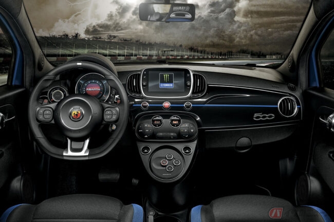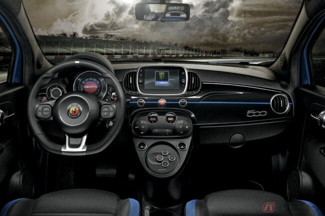 2015年から続いているアバルトとエナジードリンクのモンスターエナジー、およびヤマハファクトリーレーシングとのコラボレーションを称えて設定された595 モンスターエナジー・ヤマハは、「595 Pista」(最高出力165ps)をベースに世界限定2000台で展開。