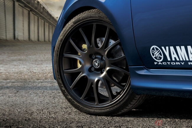また、インテリアには、モンスタークローおよびヤマハファクトリーレーシング・ロゴがあしらわれたブルーアクセントカラー入りの専用スポーツシートのほか、ブラックを基調にブルーラインが施された専用インストルメントパネル、専用フロアマットを採用。センターコンソールには限定車専用のシリアルプレートが備わっています。