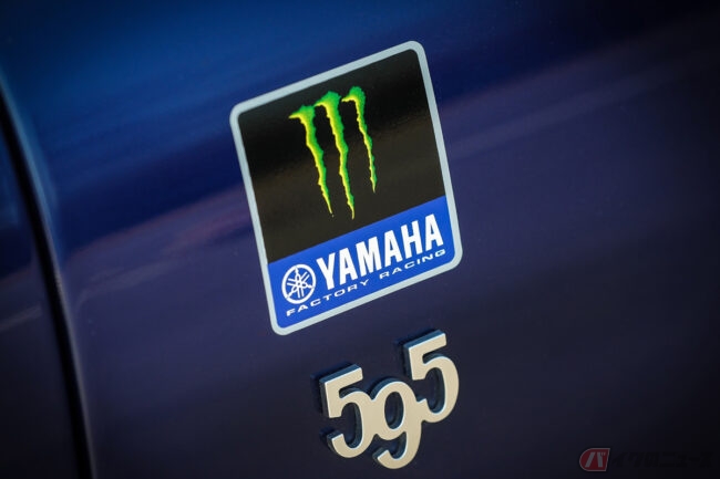 そのほか、高性能エキゾーストシステム“Record Monza(レコードモンツァ)”が特別装備されるほか、ブラック塗装の専用17インチアルミホイール、ならびにブラック仕上げのブレーキキャリパーなどを備えた「595 Monster Energy Yamaha」の価格(消費税込)340万円からで、右ハンドル・ATモード付5速シーケンシャルトランスミッション(限定20台)のほか、右ハンドル・5速MT(同20台)ならびに左ハンドル・5速MT(同20台)の3種の仕様が用意されています。