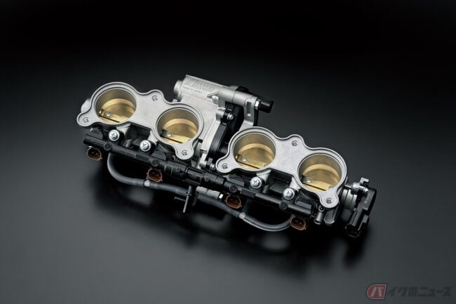 新型のハヤブサではやっぱり最新の電子制御技術を一杯入れているところがポイントだと思いますね。エンジンをより緻密な動きにするにはモーターを内蔵した電子制御スロットルが不可欠で、1/1000秒単位でバルブを開けたり閉めたりというのを行っています。