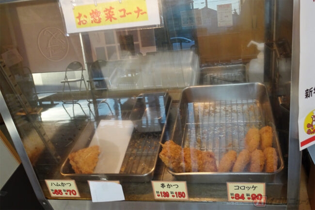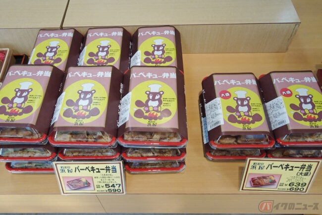 レジ脇のカウンターにはお弁当が何種類か並べられています。お目当ては看板メニューであるバー弁ことバーベキュー弁当ですが、ここでちょっと悩んでしまいました。というのも、スタンダードなバー弁(590円)のほか、お肉とご飯をボリュームアップした「大盛」(690円)、さらに手作りのきんぴらごぼうが入った豪華版の「特製」(820円)、そのボリュームアップ版の「特製・大盛」(920円)が存在するからです。