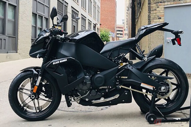 現在生産されているモデルは、ミシガン州グランドラピッズで手作業で製造され、Fuel in Frame(ガソリンタンク内蔵のフレーム)、Perimeter Brake Rotor(ホイールのリム部にブレーキローターを備えたシステム)、卓越したハンドリング、高馬力などの革新性で知られる高性能な1190プラットフォームをベースにしています。