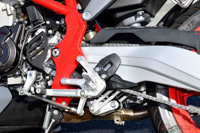 これらのことから実用性よりもスポーツ性を重視しているのは明らかです。820mmのシート高は腰高で、決して足つきが良い部類ではないものの、車体はスリムで乾燥車重は136kgに過ぎません。そのため、不安を覚えるようなシーンはほとんどないでしょう。