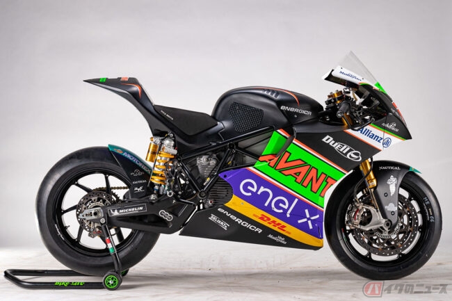 MotoEを争う電動レーサーは、イタリアの電動バイクメーカー『Energica Motor Company』(以下、エネルジカ)の『Ego Corsa(エゴ・コルサ)』で、タイヤはミシュランによって供給されています。MotoEはマシン、タイヤともに単一のメーカーによって供給されています。