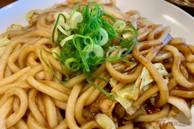さて、今回オーダーしたのは「みそ焼うどん定食」(860円)です。ほかにも「鉄板ホルモン定食」や「とんてき定食」、「長篠大盛スタミナ丼」などパワフルなメニューが多く、戦の前の腹ごしらえを意識したメニューなのでは? と考えてしまいます。