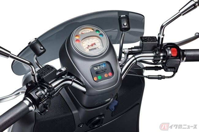スタイリングはフロントマッドガード(フロントフェンダー)上に配置されたヘッドライトが最もユニークな部分となっており、スチール製パイプがむき出しのハンドルバーとともに当時のシンプルな車体を再現しています。また、クラシカルなデザインのメーターはホワイトパネルに指針式を採用し、通常ヘッドライトが配置されるメーターの前には、スモークのトップフェアリングを装備しています。
