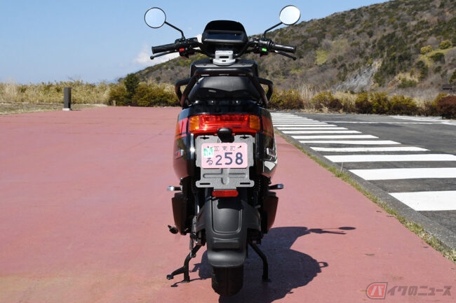 実際にまたがってみると、身長153cm、体重40kgの筆者(伊藤英里)で車体サイズに不満はありませんでした。着座位置やフラットなフロアボード(ステップ)に置く足の位置には余裕があり、乗車姿勢に違和感もありません。足つき性という点では筆者が小柄ゆえ良好とは言い難いものの、停止時に前方または左右へ体をずらせば問題ありません。むしろ125ccクラスのスクーターに比べればコンパクトな印象です。