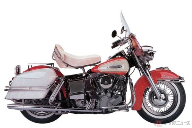 映画の中では一瞬しか見えないのですが、エンジンのカムカバーとジェネレーター、フレームに装着された丸パイプのスイングアームから察するに1966年~1969年まで生産されたFL系ハーレーにカスタムを施したものと考えてまず間違いないでしょう。