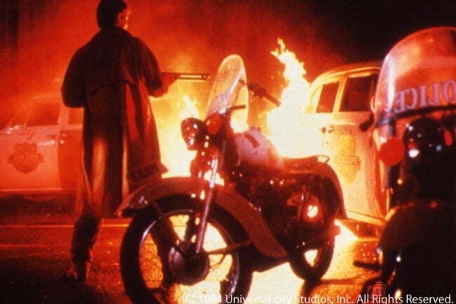 たとえば1989年の“ブラック・レイン”のオープニングでマイケル・ダグラスが走らせたハーレーのスポーツスターベースのXLCR(1977~1979年まで生産されたハーレーのカフェレーサー)レプリカや、1994年に公開された“パルプフィクション”でブルース・ウィリスが盗んだリベラ(1973年に米国のカリフォルニアで創業されたハーレー用パフォーマンスパーツメーカー)4バルブヘッドを搭載したハーレーのFXRチョッパー、また“トップガン”でトム・クルーズが走らせたカワサキ・ニンジャなどが筆者(渡辺まこと)のアタマの中に思い浮かぶのですが、その中で今回は1984年に公開された映画、“ストリート・オブ・ファイヤー”に登場したマシンについて解説していきます。
