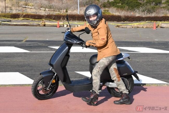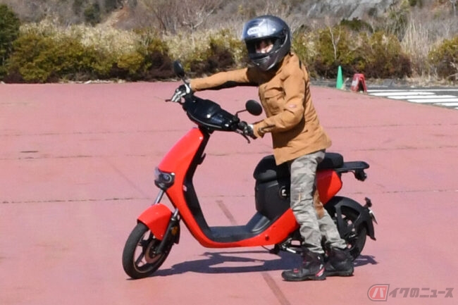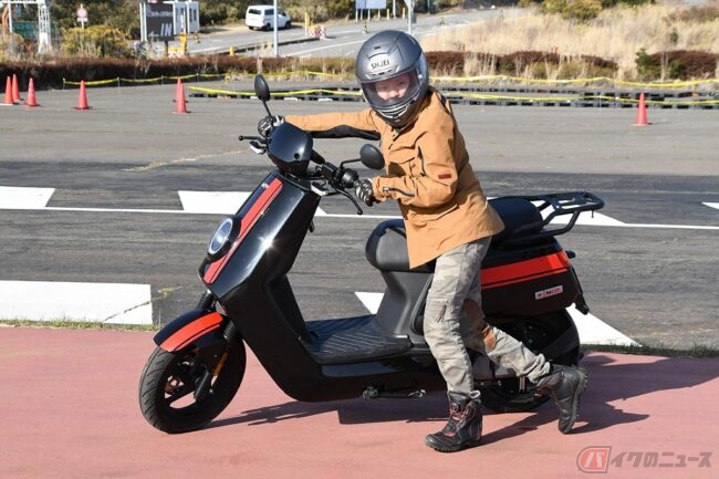 この2モデルについては、取りまわしでもその軽さを感じられました。モーターの抵抗を感じることもなく、動きを妨げることもありません。センタースタンドをかける際も楽々です。どちらも取りまわしが容易で、内燃機関の原付スクーター(排気量50cc)より楽に動かせる印象です。