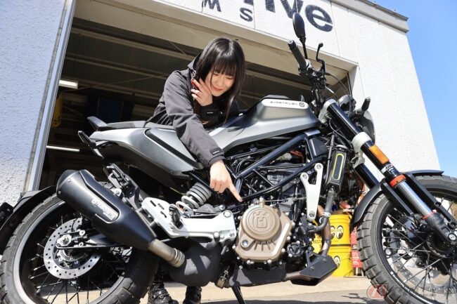 今まで見たことないオシャレ感にホレボレしちゃう! ハスクバーナのスヴァルトピレン125に、初心者女子ライダー高梨はづきが乗ってみました!