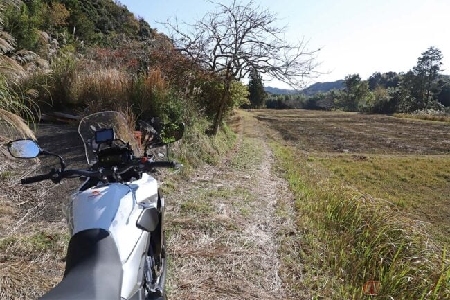 さらに先へ進むと小さな集落があり、道はやがて農道となり、行き止まりです。全行程にわたって軽自動車1台分ぐらいの道幅なので、バイクで訪れて正解でした。
