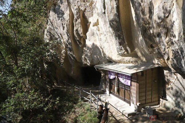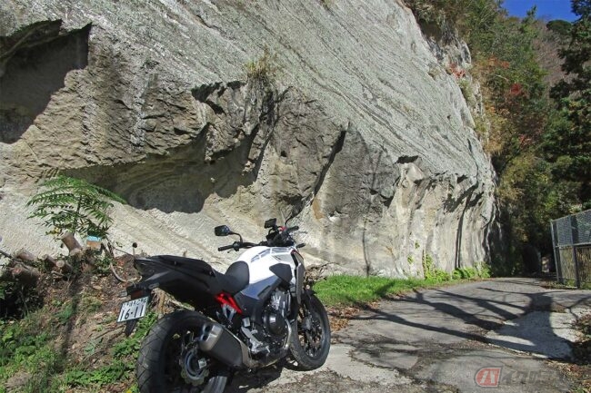 「本当に素掘りなのかな?」と疑問に思いつつバイクを乗り入れると、コンクリート部分は入り口だけで、内部は岩肌がむき出しの、まさに“素掘り”状態でした。