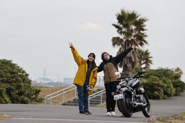 海が見えるちょっとした秘密基地? みたいな公園で一休み。一息つきながらXSRくんとBOLTくんの良いところを二人でシェアタイム。同じところが良かったり、また全然違うところに惹かれたり、実に面白い! お友達と走ってみてあんまり交換ってしないかもしれないけど、バイクについて話をしてみると、自分のマシンのいいところがさらに見つけられることを実感したそんな秘密基地での休憩。心地よい風を感じながらPhoto Timeしたりして、海と芝生で贅沢な時間がゆっくり流れてく。最高や!