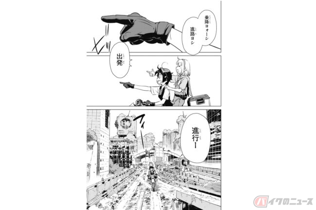 2人の少女がタンデムで誰もいない朽ち果てた世界をのんびり駆けるバイク旅コミック『終末ツーリング』第1巻が2021年4月26日に発売されます。