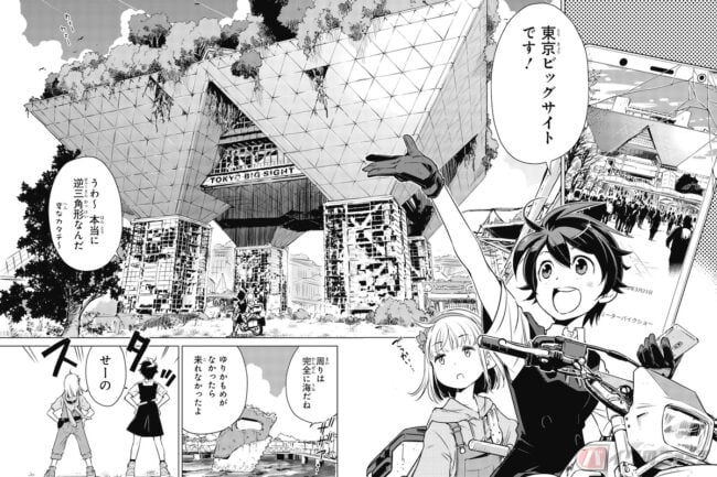 コミック『終末ツーリング』は、終末を迎えた世界をバイクでツーリングし、名所を走る1台の電動セロー225。2人の少女がタンデムでバイク旅を楽しんでいるように見えるが、周囲の景観はひどく荒れ果てています。誰もいない終末世界を2人の少女がバイクでトコトコと駆け回る異色のツーリングコミックです。終末世界を反映して電動仕様に改造されているセローに乗り、第1巻では箱根から横浜・横須賀、環八、ゆりかもめ を渡って有明などを巡ります。食料を調達したり、空き家を探索したり、バッテリーを充電したり、時には温泉につかりつつ、終末世界のバイク旅は続きます。