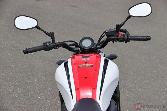 タンクサイドのカバーやヘッドライトステーなど、各部に使われたアルミ製パーツも、ユーザーの心をときめかせるように仕上げつつ、周囲への馴染ませ方にもこれ見よがしではなく、その使い方が上手い! 91万6300円という価格(消費税10%込み)に所有感をしっかり満たします。
