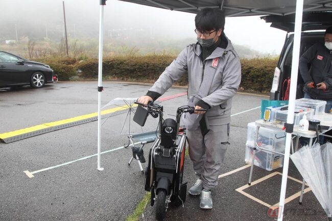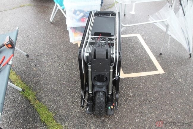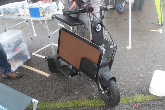 あとオフィスの机の下に置いて、ちょっとした買い物の時に使ったり、積み上げて置けるという特徴を活かしてレンタルバイクとして活用して頂くのもイイですね。ウチは今年の3月31日に創業したばかりのベンチャー企業なんですけど、電動バイク業界もまだ始まったばかり。今回のイベントに合わせて試作車を完成させた段階なんですけど、ウチみたいなメーカーが参入出来る余地もあるので夢も広がっていますよ」とも語る生駒さん。