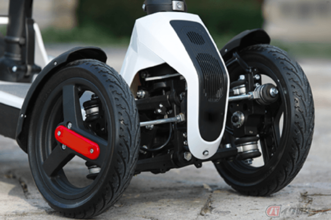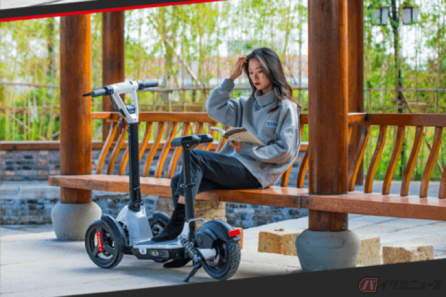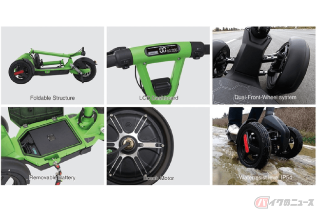 前2輪の電動キックボード型三輪バイク「ilark」登場 ゴールドトライアングル構造により単独倒立も可能に