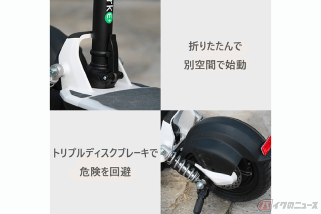 また、ilarkではより安定した走行性を実現するため、リアにツインショックのサスペンションを採用したほか、3輪すべてにディスクブレーキを採用。安定した制動力が与えられています。