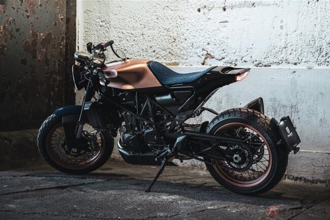 今回、両社のコラボレーションモデルとして登場した車両は、Vitpilen701、701Supermoto、701Enduro LRの3モデルをベースにしたもので、ブラックとカッパー(銅色)のカラーリングやREPLAYのデニム素材を使用したシート、専用ロゴのほか、テクニカルアクセサリーなどが採用されています。