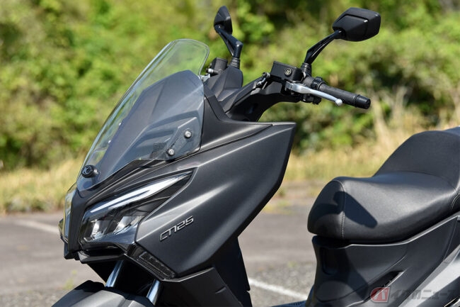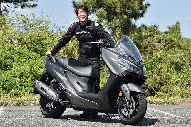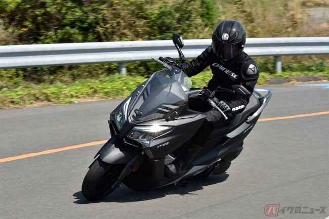 もしもキビキビとしたレスポンスを望むなら、フットレストの足をフロアボードの前へ投げ出し、クルマのような姿勢を取ると良いでしょう。右へ曲がりたい時は右足に軽く力を込め、左はその逆。そうやって積極的に荷重を掛けるとコーナリングのきっかけをたやすく作ることができます。旋回中はバックレストが腰をホールドし、バンク角に不足もないため、見た目よりはるかにシャープな走りで応えてくれるはずです。