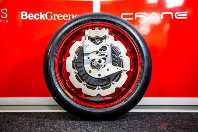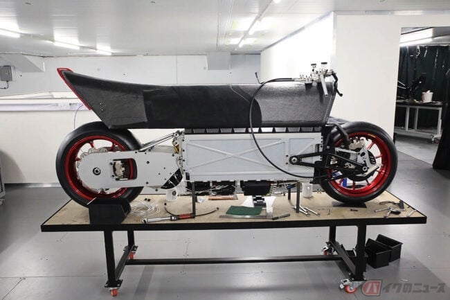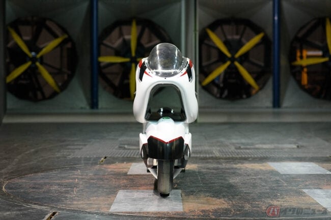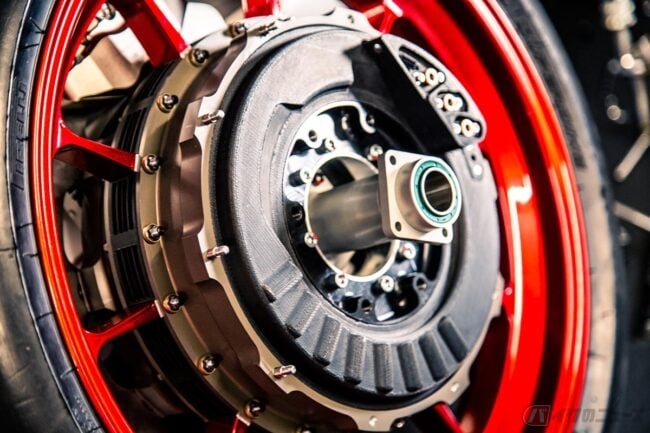 優れた空力特性をもつことで知られるスズキ「HAYABUSA」と比較して空気抵抗が70%減り、前輪の荷重は5倍にも及ぶというWMC250EVでは、後輪に30kWのモーターを2基、前輪にも20kWモーターを2基搭載して合計100kW(134ps)の全輪駆動化。