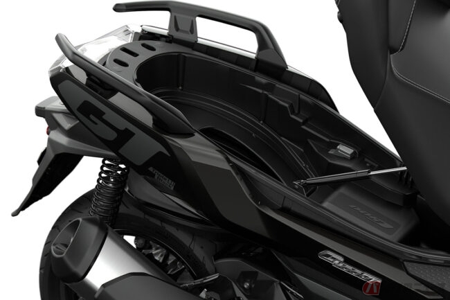 新型「C 400 X」および「C 400 GT」では、エンジンの駆動を効率よく伝達するために、CVT(無段変速機)ギヤ・ボックスと、振動を抑え快適性を高めるスイングアーム・ベアリングを備えた、ねじれ剛性の高いスイング・アームを採用。