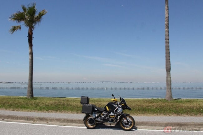 距離12kmの走行時間は37分。渋滞はないものの、クルマは多く、アルミケースが左右に張り出した巨体はさすがに目を引きます。その幅は軽自動車に親近感を感じるほど。
