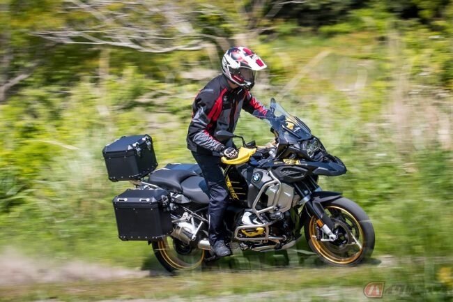 いま人気のカテゴリーであるアドベンチャーバイク、それを切り拓いた「GS」モデルの販売開始から40周年を祝い、特別な仕様を纏ったこの車両、通常のプレミアムラインの価格278万6000円(消費税込)に加え、22万3500円プラス。さらにテスト車には「アルミニウムケースセット・ブラックエディション」21万2256円、「アルミニウムトップケース・ブラックエディション」10万4082円、「BMWモトラッドナビゲーターⅥ」の9万3500円が装着され、その合計は341万8838円というプライスに。