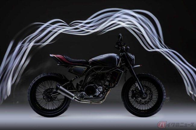 新たに公開されたStreet Tracker は、同時に発表された「Street Moto」と同じくトレリスフレームに排気量600ccのビッグシングル・エンジンを搭載したモデルで、乾燥重量145kgと軽量な仕上がりとなっています。