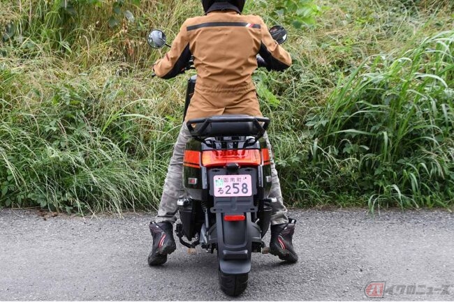今回検証で走らせたのは、定格容量2100Wh(60V/35A)のパナソニック製バッテリーを2個搭載する2020年モデルで、定格出力は1000W、最大出力は3500Wです。2021年モデルのバッテリーは中国製となり、定格容量や航続距離が異なります。