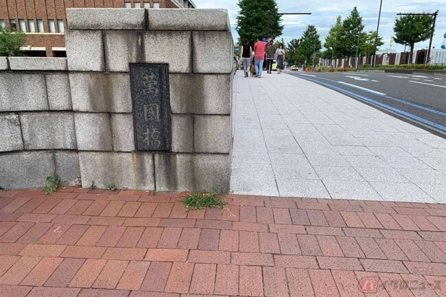 そんなみなとみらいの景色を一望できるのが、今回の目的地でもある「万国橋」付近です。関内・馬車道方面からまっすぐ港へと向かう万国橋通りと新港地区を結ぶ橋で、初代が架けられたのは1904(明治37)年にさかのぼります。その後1940(昭和15)年に拡幅し、現在のものに架け替えられました。
